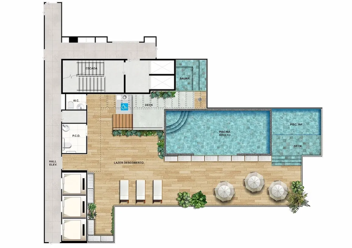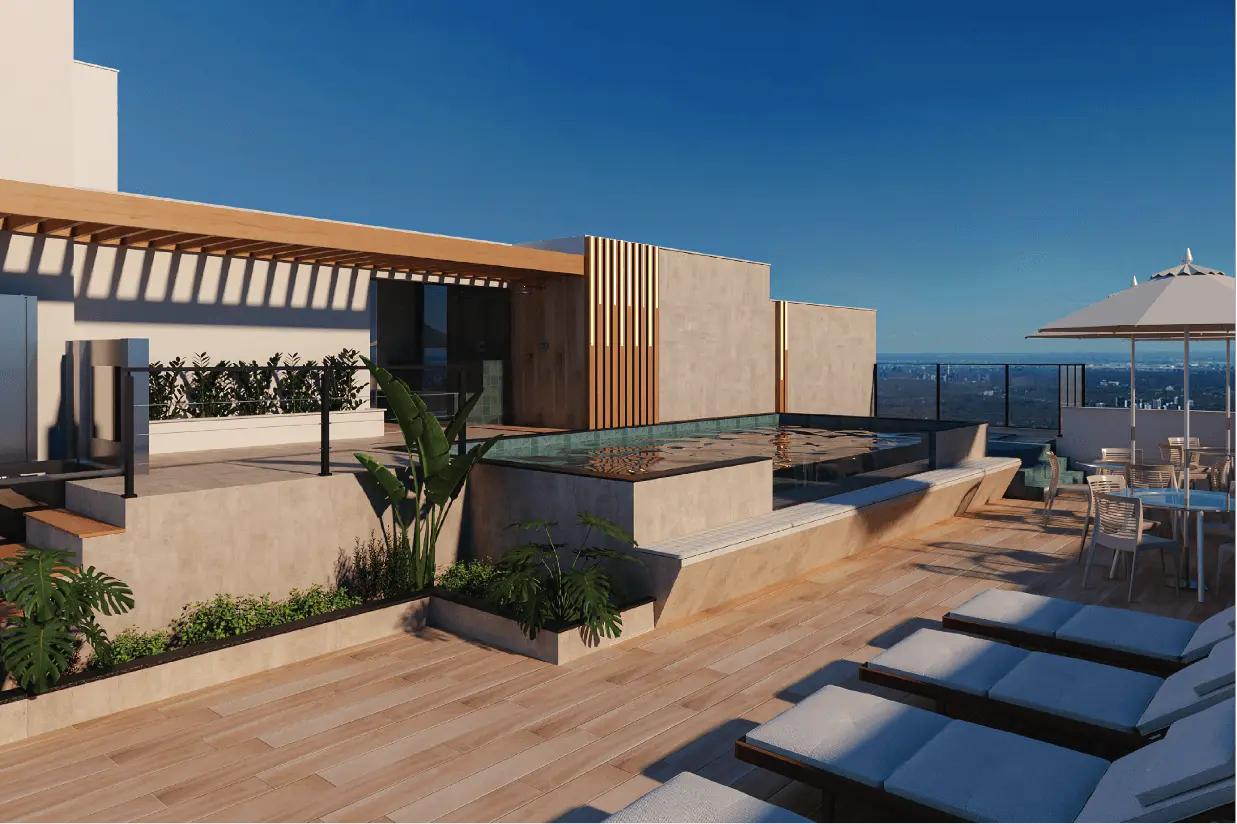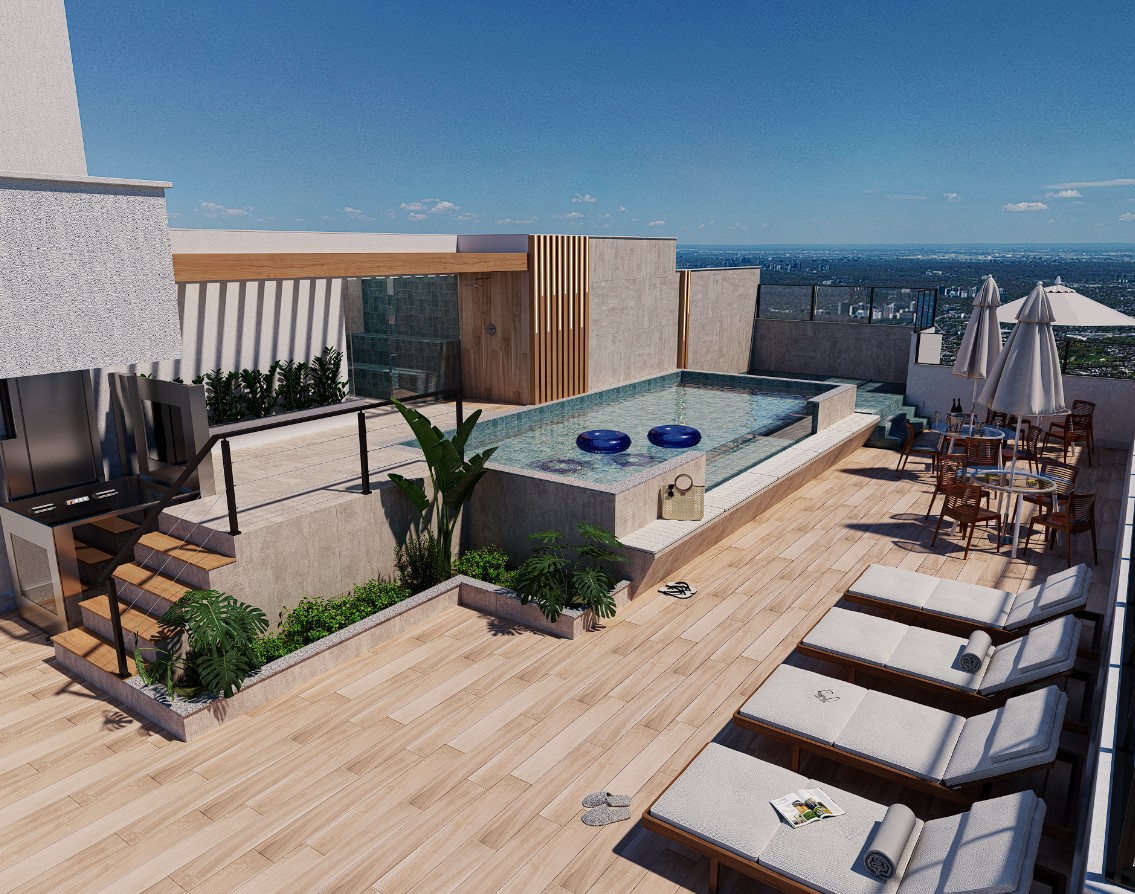 • Coworking com sala de reunião• Churrasqueira• Quadra Infantil • Piscina na cobertura• Sauna na cobertura