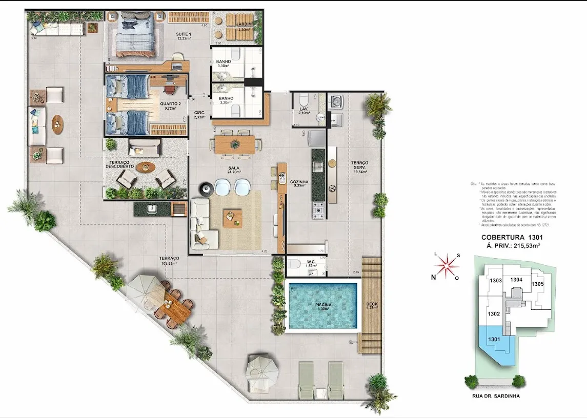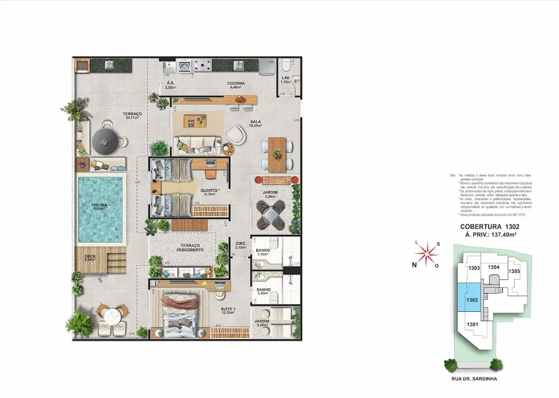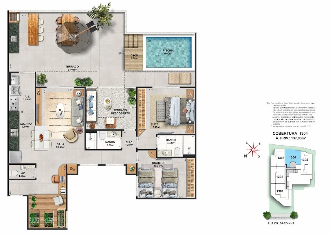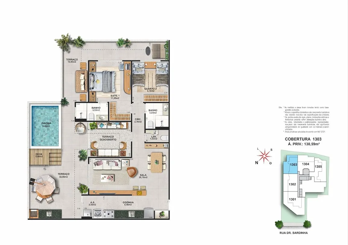 • Coworking com sala de reunião• Churrasqueira• Quadra Infantil • Piscina na cobertura• Sauna na cobertura