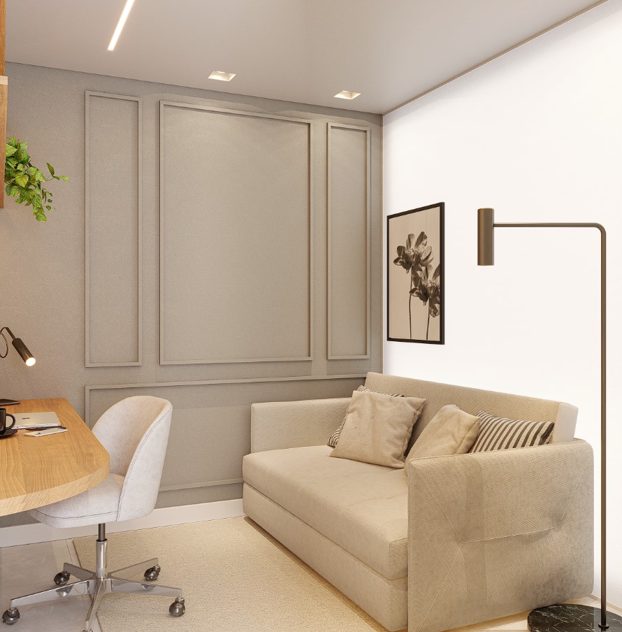 Escritório, estúdio multimídia, sala de filme, estúdio de música ou closet. O cômodo multiuso se adapta ao seu estilo!