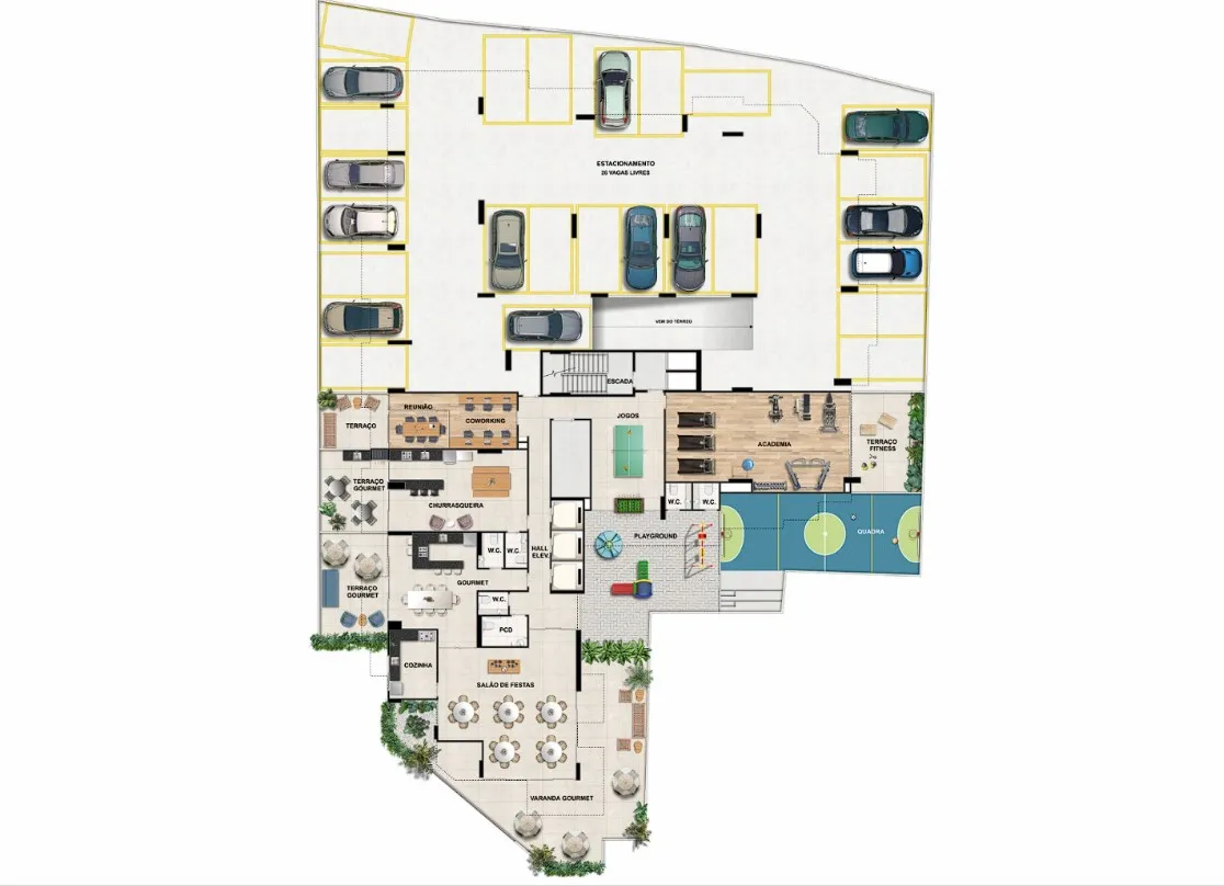 • Salão de Festas• Espaço Gourmet• Academia• Play Descoberto• Jogos